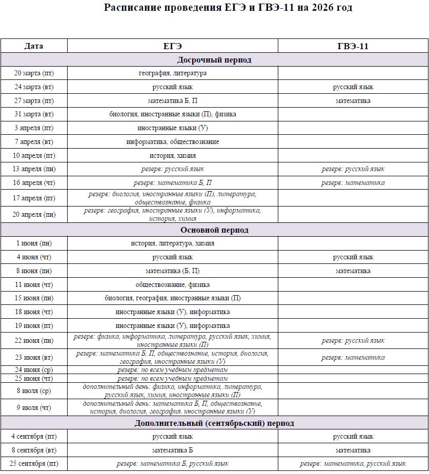 Государственная (итоговая) аттестация выпускников 11 (12-х) классов проводится в форме единого государственного экзамена (далее – ЕГЭ), а также в форме государственного выпускного экзамена (далее – ГВЭ). Обязательными для всех выпускников школ текущего года являются экзамены по русскому языку и математике. ВУЗы и ССУЗы используют результаты ЕГЭ в качестве результатов вступительных испытаний.